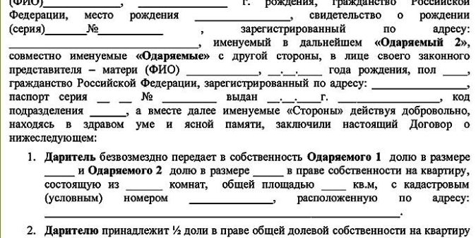 Договор дарения с выделением доли, образец