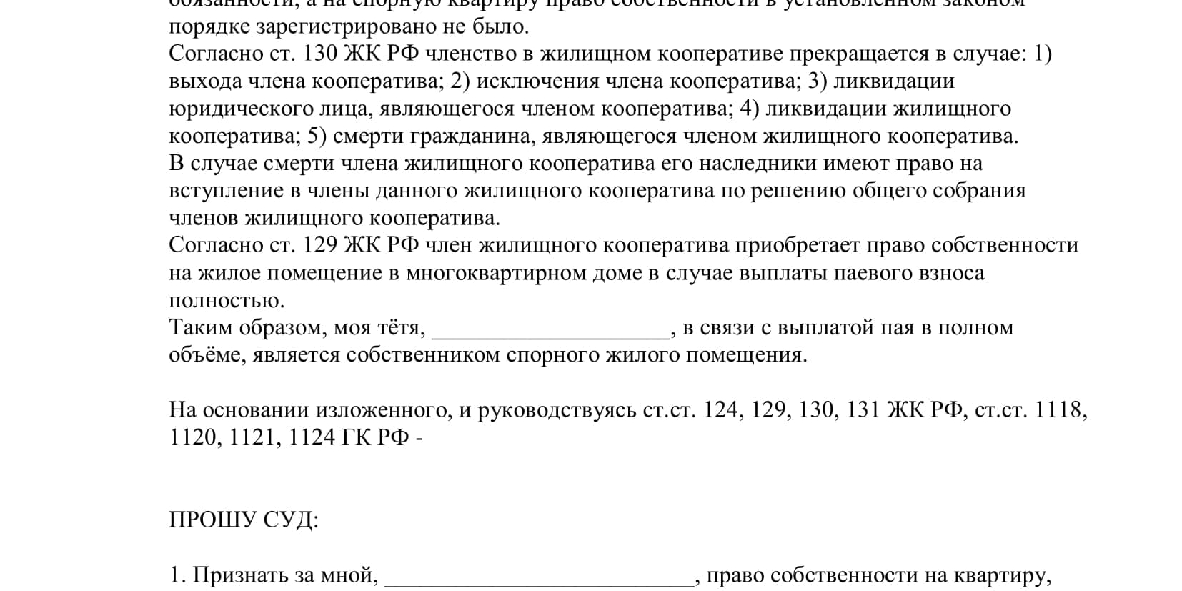 Образец искового заявления о признании права собственности по наследству