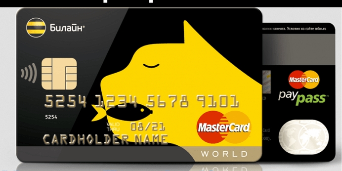 Оператор Билайн предлагает карту с платежной системой Mastercard. Вы можете выбрать кредит с лимитом до 300 000 рублей. или дебет. Процедура регистрации заключается в подаче заявления в офисе, где при предъявлении паспорта моментально заполняется заявление на выдачу. После активации вы сможете оплачивать покупки и услуги, выводить и переводить деньги.