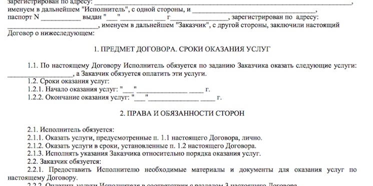 Типовая форма договора оказания услуг законодательно не утверждена и имеет одно существенное условие, установленное Гражданским кодексом. Это предмет договора, где важно описать конкретные действия или действия исполнителя. Здесь можно использовать формулировку из классификатора видов экономической деятельности. Однако этого не всегда будет достаточно.