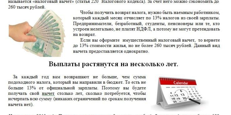 Сумма возврата составляет 13 процентов от суммы, которую физическое лицо потратило на покупку квартиры. Максимальная сумма возврата составляет два миллиона рублей. В соответствии с этим положением налогоплательщик может получить максимальный возврат в размере 260 000 рублей. Сумма налога, подлежащая возврату в соответствии с имущественным вычетом, не должна быть больше суммы налога на прибыль, уплаченной в год получения вычета. Именно поэтому, если налогоплательщик имеет право на возврат максимальной суммы, он ограничивается суммой налога, уплаченного в этом году. Но за налогоплательщиком сохраняется право на получение максимальной суммы вычета. Если в текущем году физическое лицо получило сумму вычета не полностью, то он будет выплачен в следующем году.