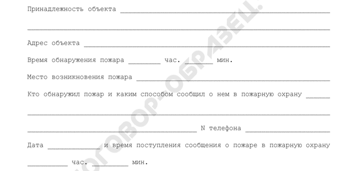 - Причина и ущерб, причиненный пожаром (если их можно установить сразу);