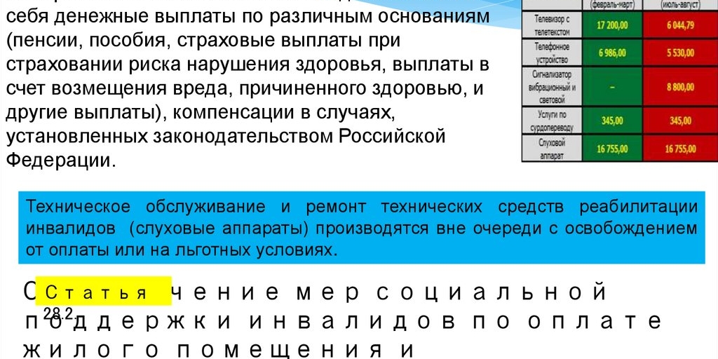 - Медицинские принадлежности (инвалидные коляски, спецобувь и т.д.);