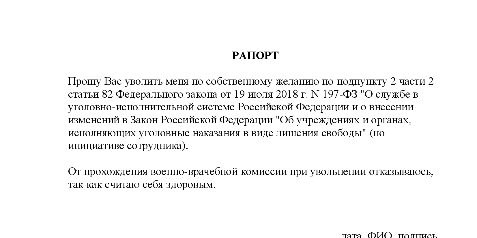 - Рапорт заполняется на имя начальника учреждения уголовно-исполнительной системы;