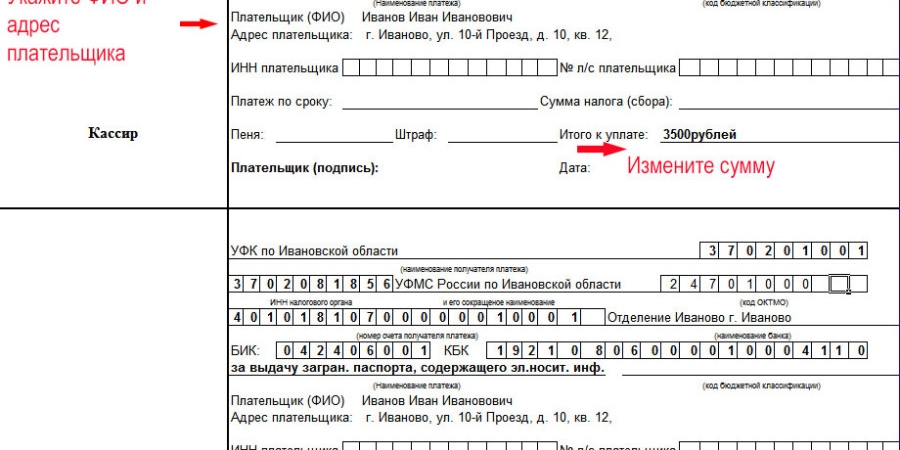 | Несовпадение фактических данных о плательщике или получателе с информацией в квитанции | Если не совпадают сведения о Ф.И.О. плательщика и наименовании получателя, такая квитанция УВМ МВД принята не будет, и оформить загранпаспорт не удастся |