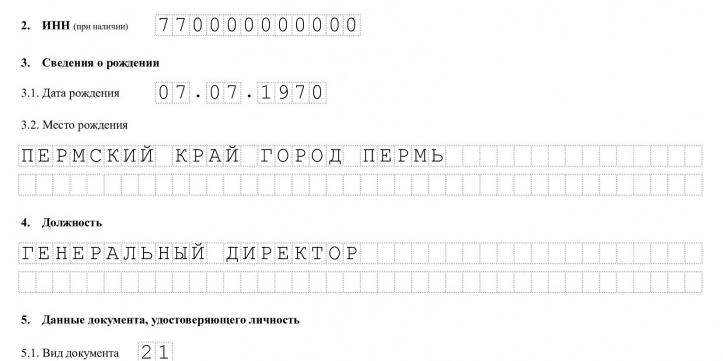 Форма имеет машиночитаемый вид, каждый символ проставляется в отдельной ячейке. Если документ заполняется в текстовом редакторе, необходимо использовать заглавные буквы шрифта Courier New 18 размера. Допускается ввод информации вручную - черной пастой или тушью, заглавными печатными буквами. Исправления, помарки, подчистки не допускаются.